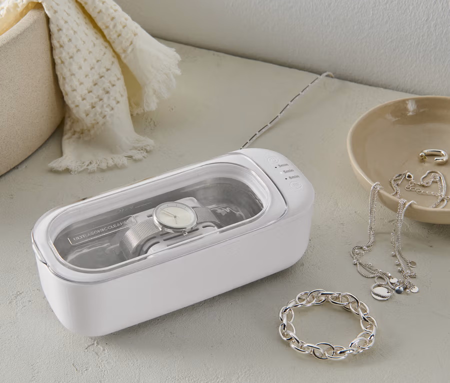 Reinigt Schmuck, Diamanten, Brillen, Sonnenbrillen, Kontaktlinsen-Zubehör, optische Linsen, Zahnersatz, Kämme, Zahnbürsten, elektronische Rasierköpfe, Rasierapparate