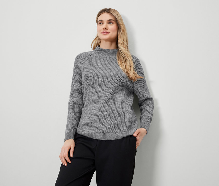 - Elastische Rippbündchen an Stehkragen, Ärmelabschluss und Saum