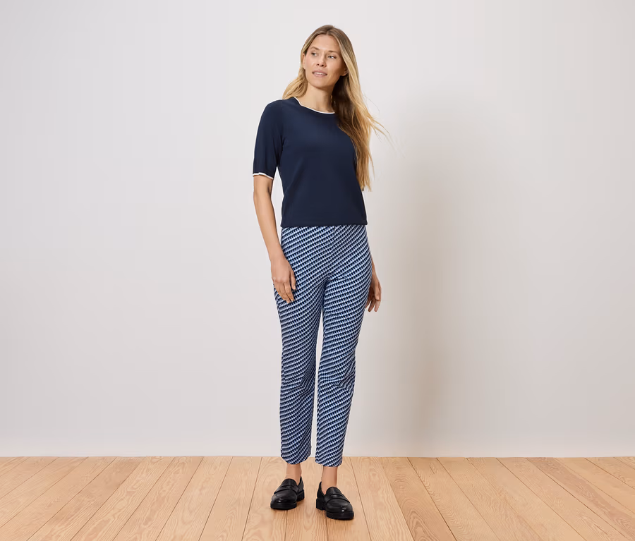 Stretchhose, blau-weisser Alloverprint