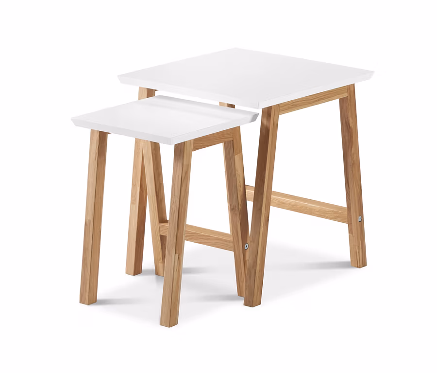 Moderner Look in zwei Grössen: Diese zwei Tische unserer Serie »Funktionalität trifft Design« eignen sich genauso als Beistelltisch wie als Couchtisch und setzen in jedem Raum einen dekorativen Akzent. Die Beistelltische sind unterschiedlich hoch – ca. 48 und 43 cm – und mit einer Tischplatte aus FSC®-zertifizierter Eichen-MDF sowohl einzeln als auch in Kombination echte Eyecatcher. Eine hochwertige, strapazierfähige Lackierung schützt die Tischoberfläche, die Beine aus FSC®-zertifiziertem Eichen-Massivholz sorgen für einen guten Stand.