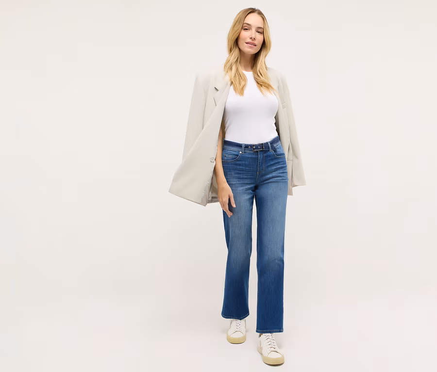 • Moderner Straight Fit mit weitem, geradem Beinverlauf