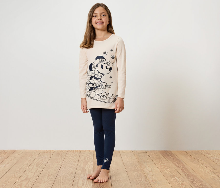 - Hose dunkelblau mit platziertem cremefarbenem Print