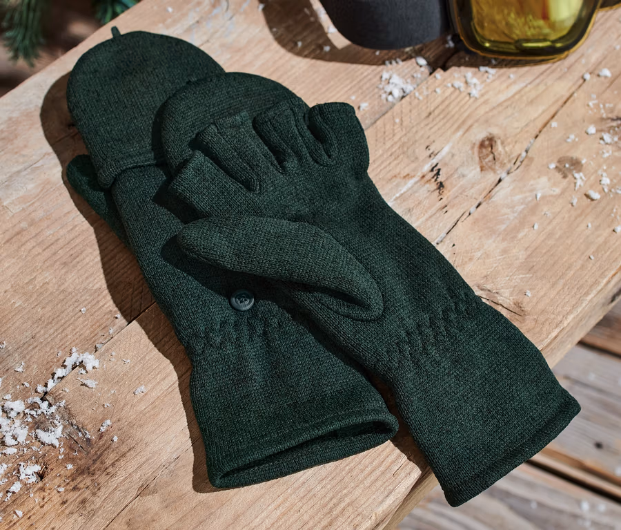 Strickfleece-Klappfäustlinge, grün