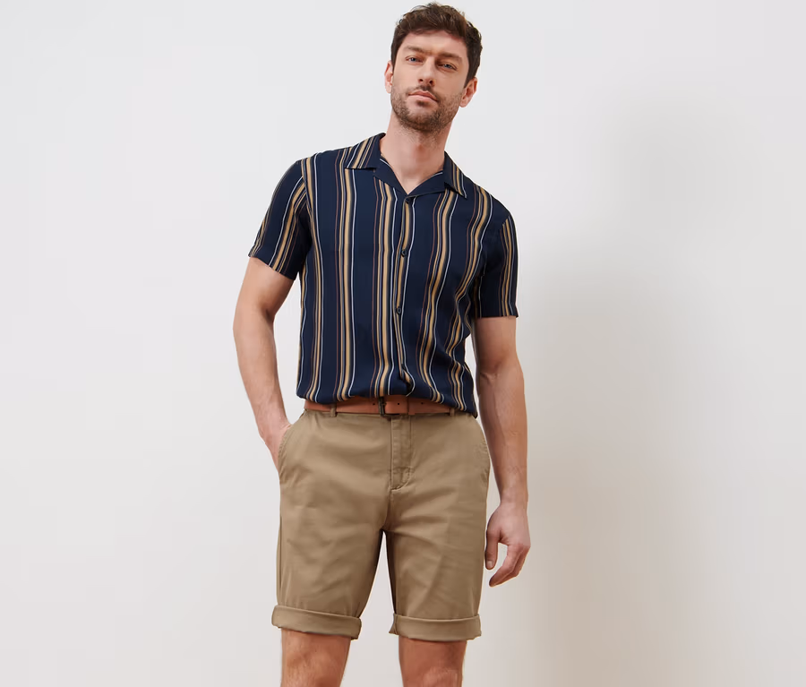 - Sommerliche Baumwoll-Stretch-Qualität mit angenehm glatten Griff