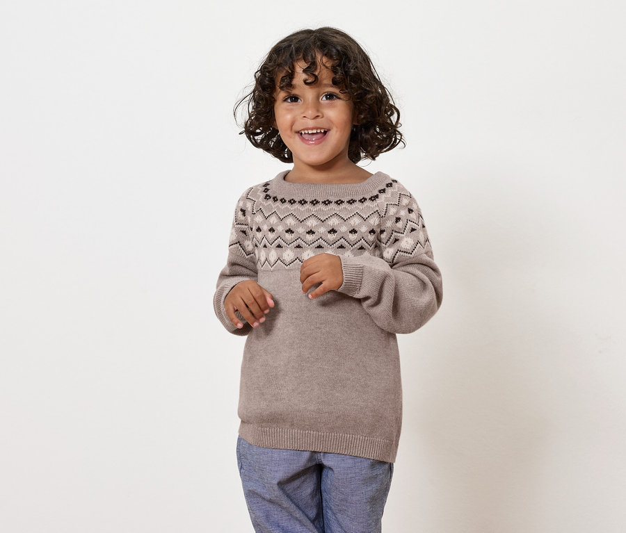 - Cremefarben meliert mit navy-weiss-goldfarbenem Norweger-Einstrick