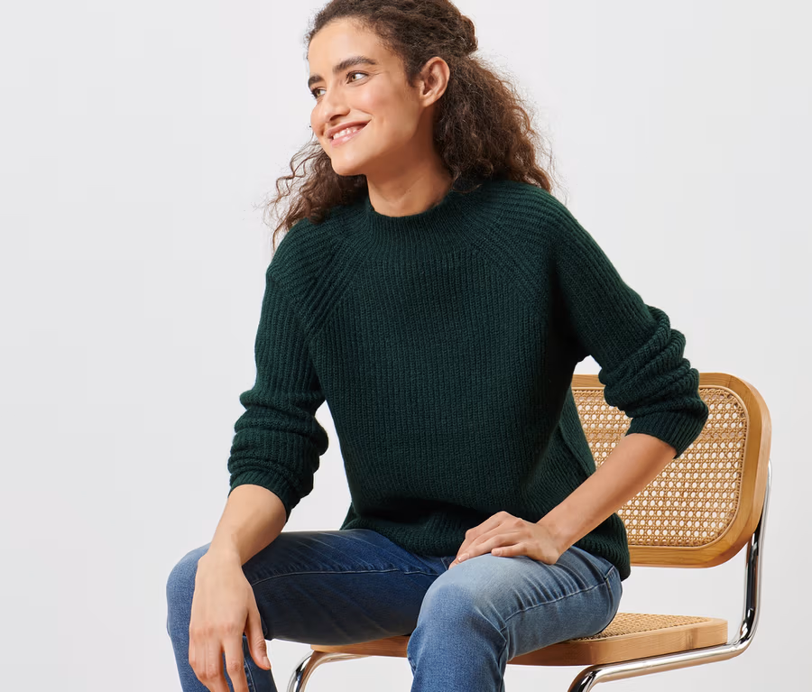 - Elastische Rippbündchen an Stehkragen, Ärmelabschluss und Saum