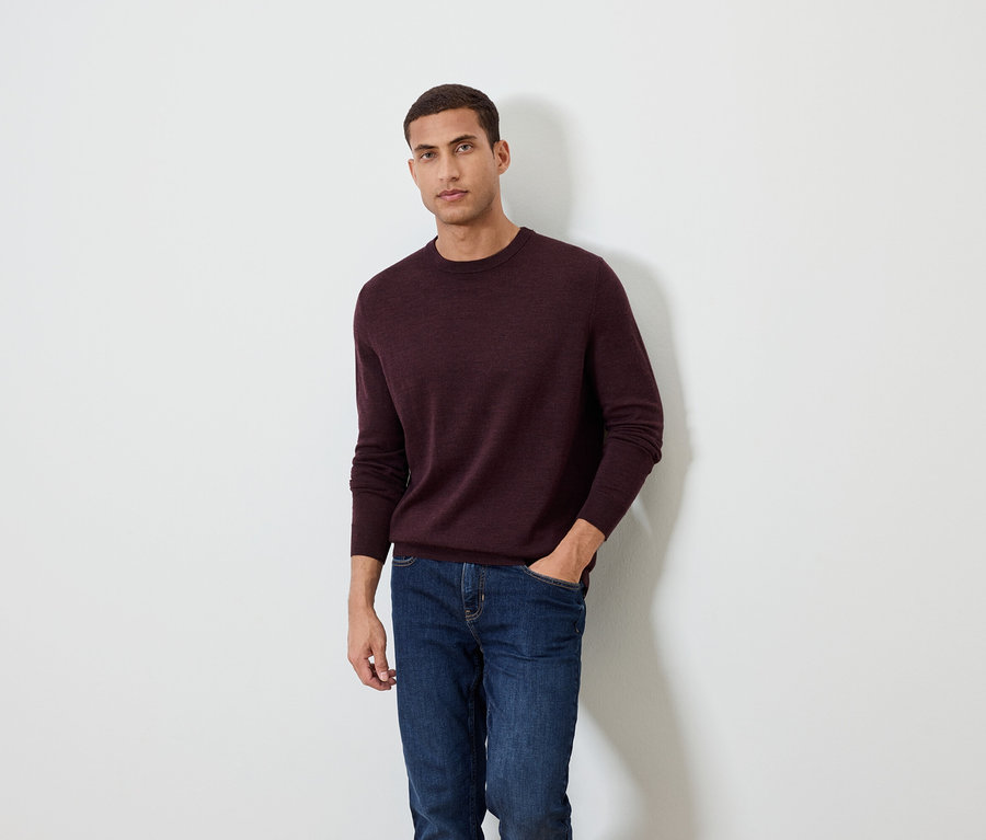 Merino-Pullover, dunkelrot meliert