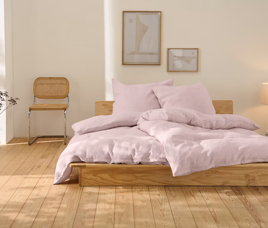 Leinen-Bettwäsche, rosé, Normalgrösse