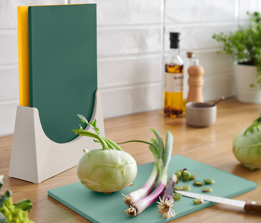 • Verschiedene Farben zur hygienischen Unterscheidung – für Fisch, Fleisch sowie Gemüse und Obst