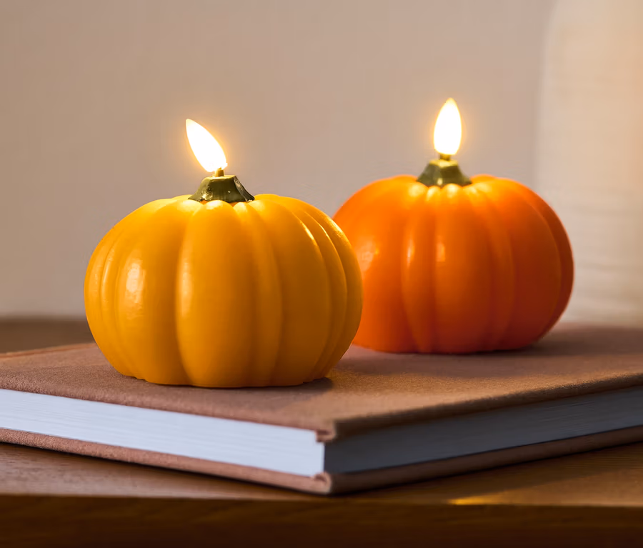 2 LED-Echtwachskerzen »Kürbis«