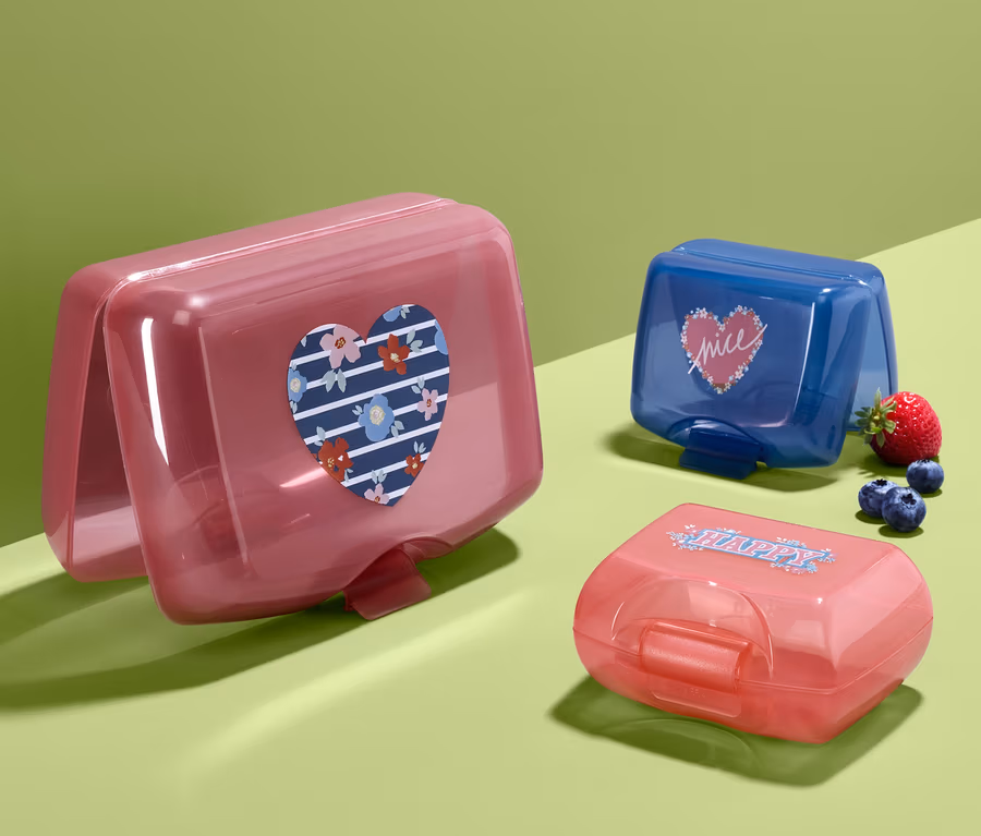 Mit diesen coolen Brotdosen kommen Pausenbrot oder kleine Snacks unfallfrei mit in die Schule oder auf den Ausflug. Das Set besteht aus einer grossen Lunchbox und zwei kleinen Dosen, alle drei sind aus BPA-freiem Kunststoff gefertigt und mit unterschiedlichen Motiven versehen.