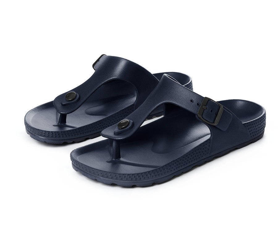 Diese Zehengreifer sind die idealen Begleiter am Strand, im Schwimmbad oder auch im heimischen Garten. Ihr vorgeformtes Fussbett schmiegt sich harmonisch an den Fuss an und sorgt so für besonders hohen Tragekomfort. Der hautfreundliche Kunststoff macht die Badelatschen leicht, elastisch und natürlich salz- und chlorwasserresistent. Mit einer Schnalle lassen sie sich in der Weite anpassen. Die Laufsohle ist leicht profiliert, damit man auch auf Fliesen oder nassen Holzbohlen einen sicheren Schritt hat.