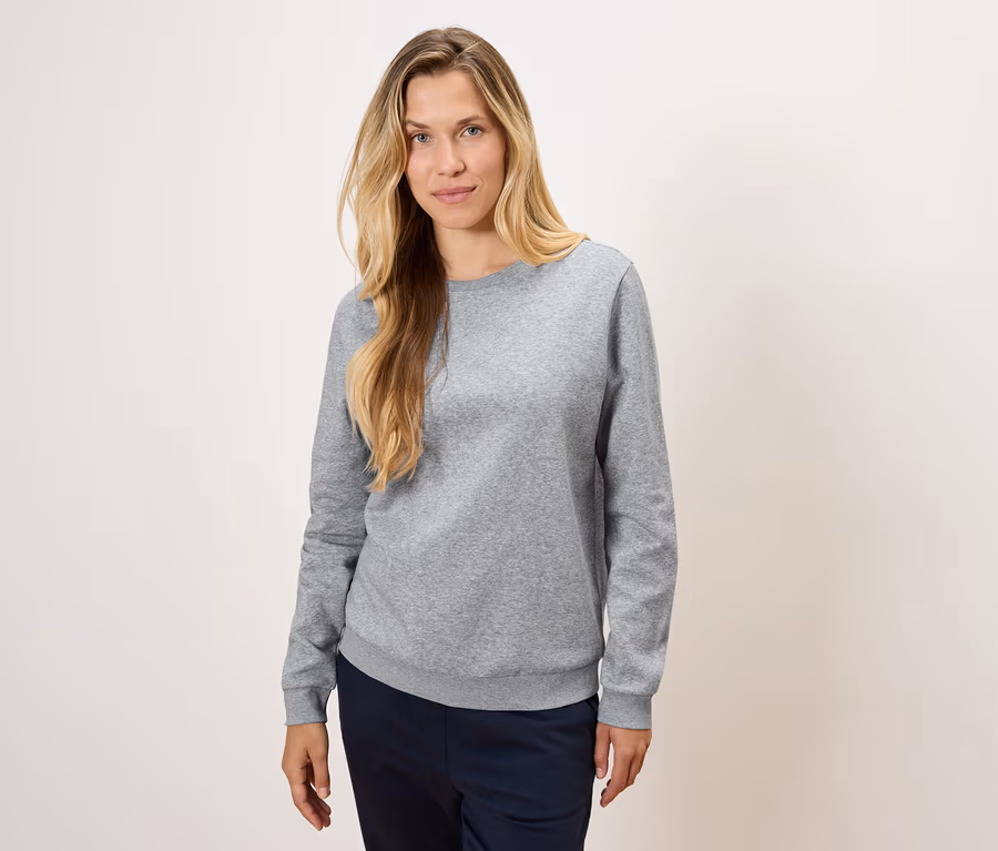 - Elastische Rippbündchen an Ausschnitt, Ärmelabschluss und Saum