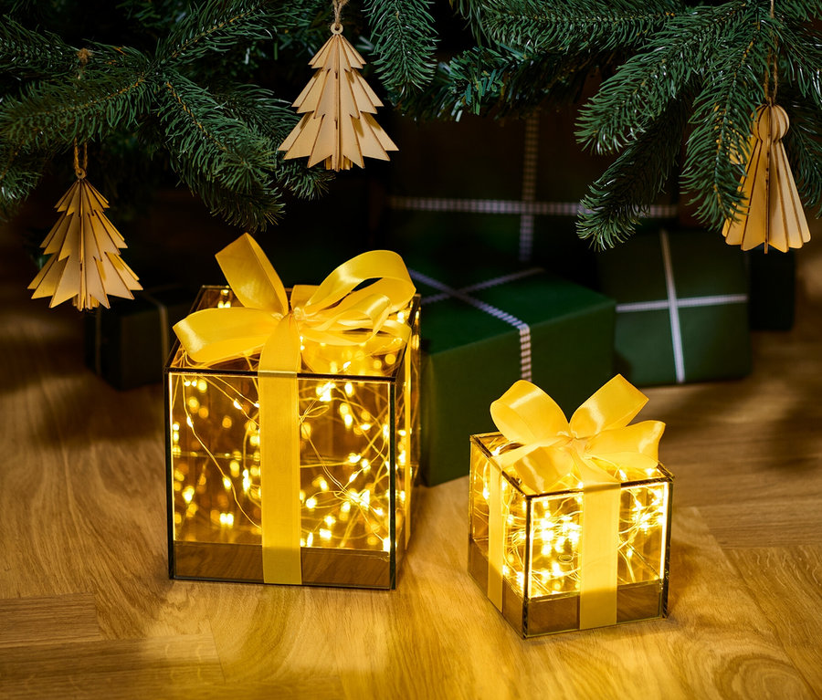 - 2 Glasbehälter in Geschenkoptik mit 1x 25 und 1x 15 LEDs – Lichtfarbe warmweiss