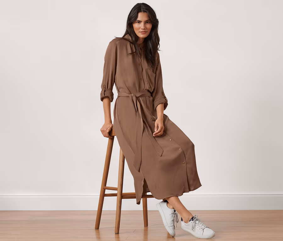 - Abnehmbarer Bindegürtel auf Taillenhöhe