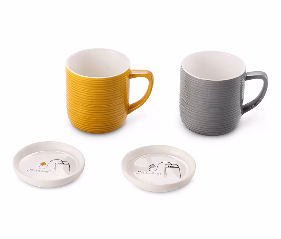 Diese beiden Becher sind aus hochwertiger Keramik gefertigt und setzen mit ihrer ansprechenden Rillenstruktur schöne Akzente beim Kaffee am Morgen oder beim Tee am Nachmittag. Beide Becher haben einen Deckel mit illustrativem Dekor, der sich auch als Untersetzer oder Ablage für Teebeutel nutzen lässt. Sie sind übereinander stapelbar und lassen sich platzsparend verstauen.