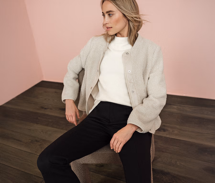 • Kuschelige Teddyjacke mit abnehmbarer Softshell-Kapuze