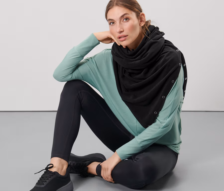 • Verschiedene Trage- und Nutzungsvarianten: Schal, Cape, kleine Yoga-Decke