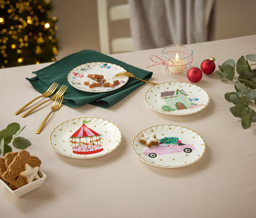 - Weiss mit mehrfarbigem Dekor und goldfarbenem Rand
