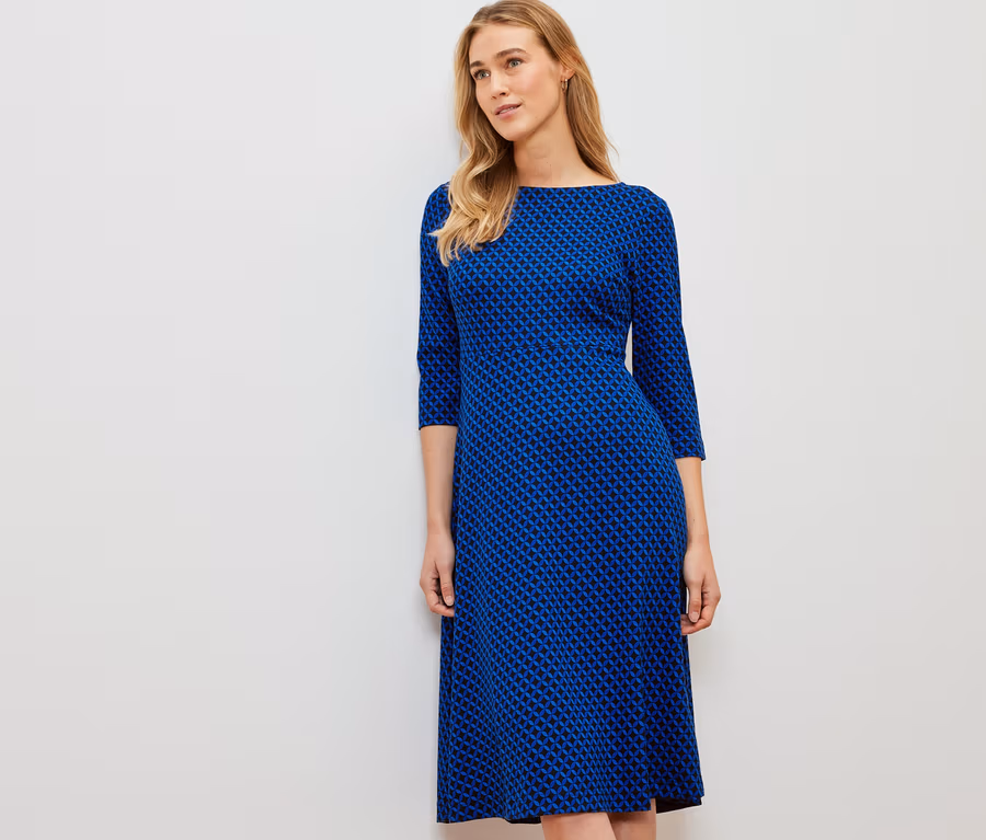 • Teilungsnaht auf Taillenhöhe mit angesetztem Rock in A-Linie