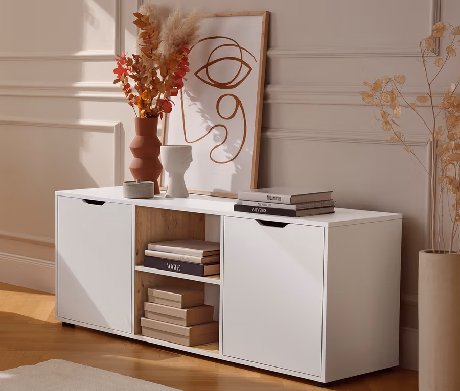- Mit Schubladen und offenem Fach für zusätzlichen Stauraum