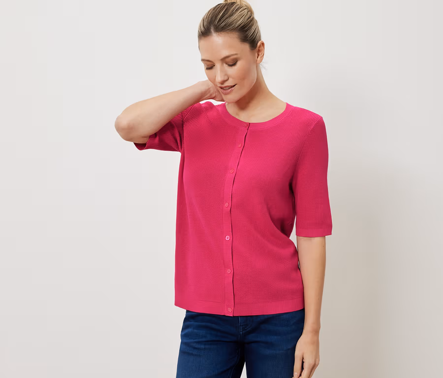 - Dieser Feinstrick-Cardigan beinhaltet Fasern aus nachhaltigem Holz.