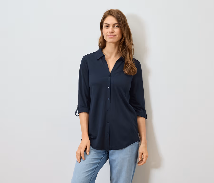 - Abgerundeter Saum mit leicht verlängerter Rückenpartie