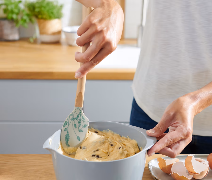 - Besonders flexibel – passt sich der Form der Rührschüssel an und ermöglicht restloses Ausschaben