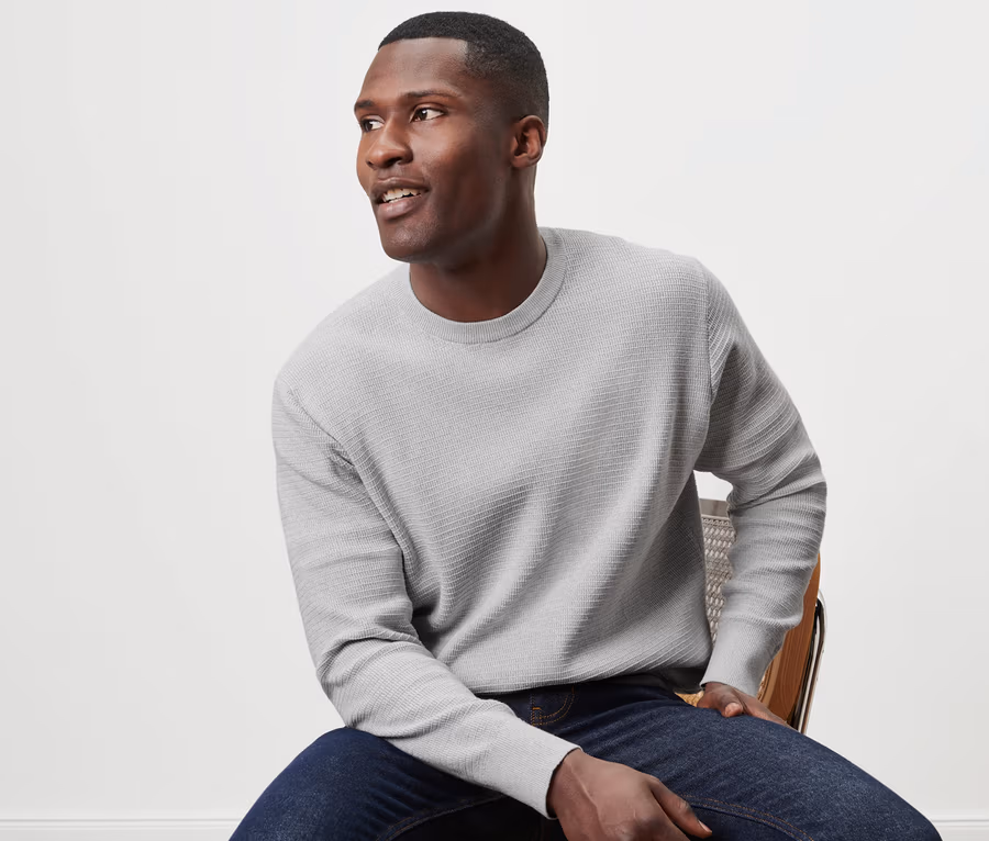 - Rippstrickbündchen an Ausschnitt, Ärmeln und Saum