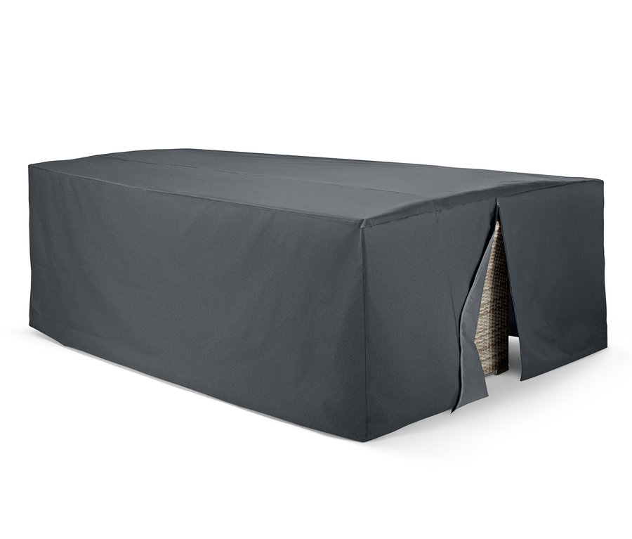Diese Schutzhülle ist durch ihr stabiles 600D-Polyestergewebe besonders strapazierfähig und hält Wind und Regen stand. Die Abdeckhaube hat einen verstärkten Rand mit genieteten, rostfreien Metallösen und einen Kordelzug mit Stoppern. Mit ihren grosszügigen Massen eignet sie sich optimal für Loungemöbel und bei Nichtgebrauch findet sie in einem Aufbewahrungsbeutel ihren festen Platz.
