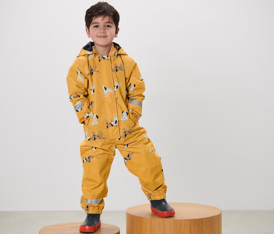 - Dieser Regen-Einteiler schont Ressourcen.