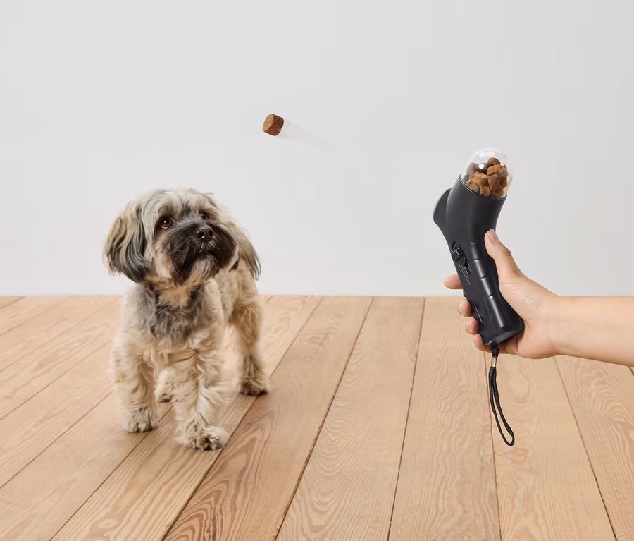 • Schiesst Leckerlies bis zu 4 Meter weit