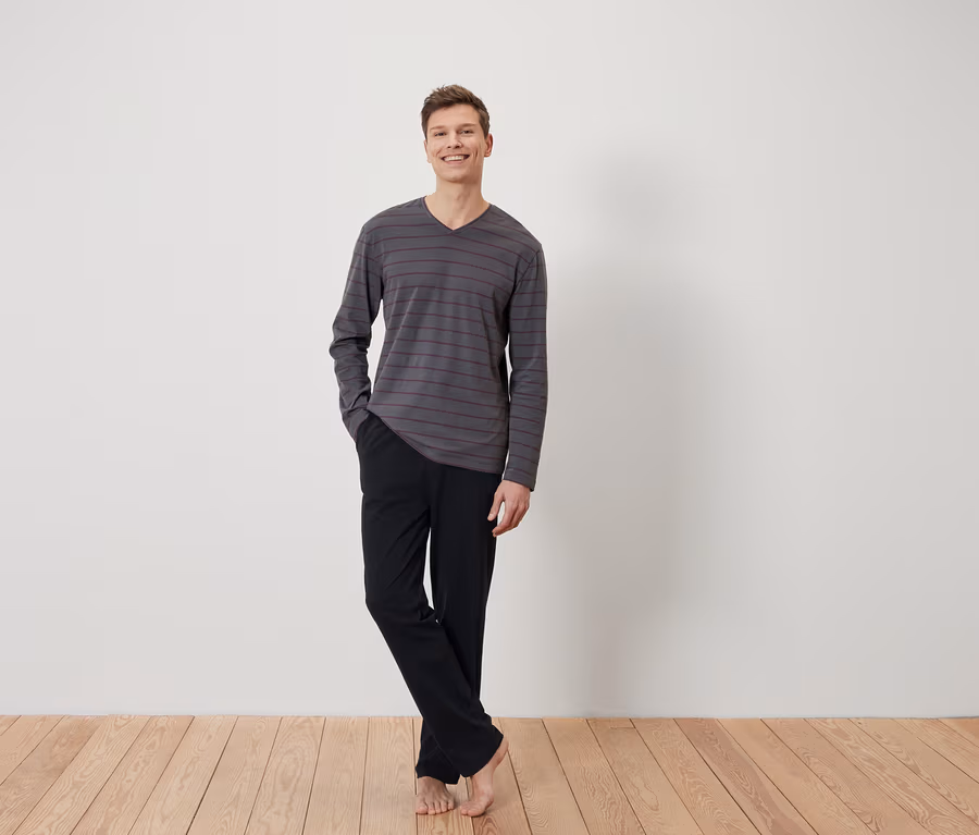 - Herren-Pyjama aus reiner Baumwolle in weicher Single-Jersey-Qualität
