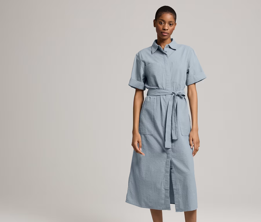 - Ob über Chinos lässig aufgeknöpft oder elegant auf Taille gebracht – unser Crinkle-Kleid ist ein AlldayLiebling. In hochwertiger Seersucker-Qualität aus ökologisch angebauter Baumwolle, die im clean designten Hemdblusen-Stil weich fällt und sich mit aufgesetzten Taschen und einem abnehmbaren Bindegürtel unkompliziert stylen lässt.
