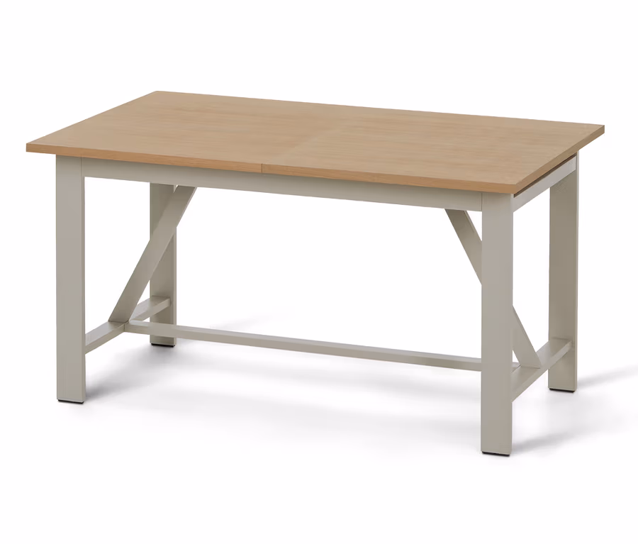 - Tischbeine aus FSC®-zertifiziertem Akazien-Massivholz in leicht gewaschenem und modernem Grau-Beige lackiert