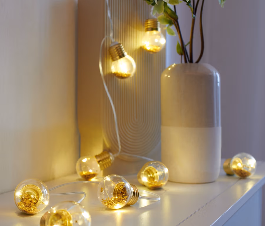 - Glitter im Inneren der Glühbirnen goldfarben, glänzend