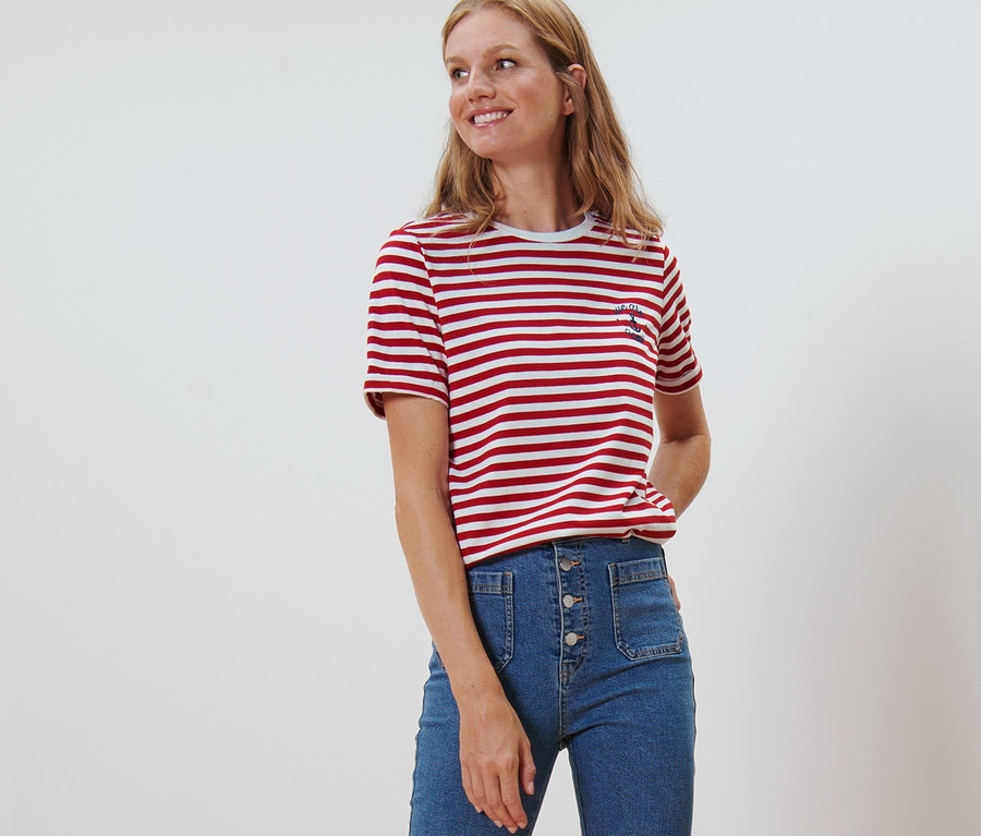 T-Shirt mit Stickerei, rot-weiss gestreift