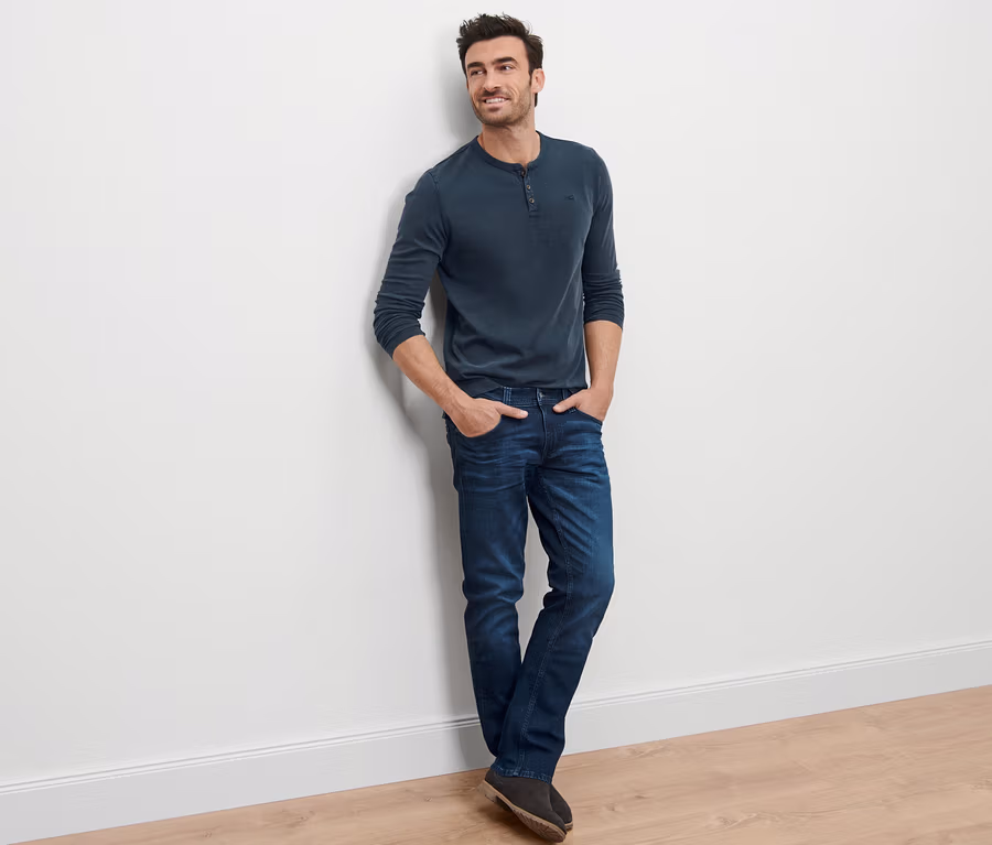 - Straight/Slim-Fit mir gerader Beinpartie und niedriger Leibhöhe