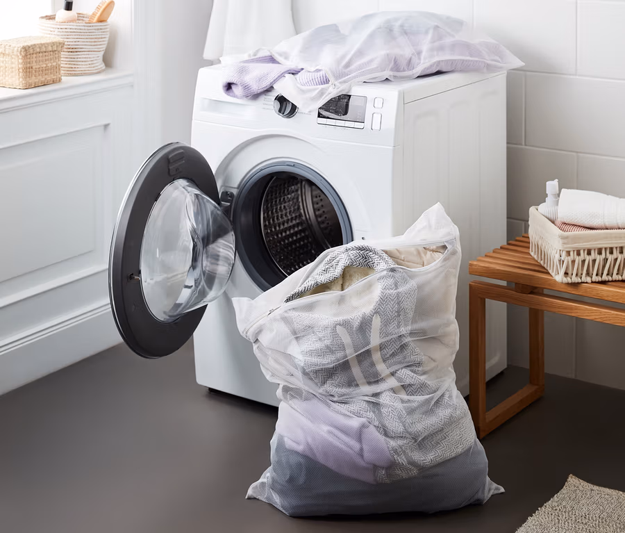 - Farbiger Reissverschluss mit Zipper-Abdeckung – schützt Wäsche und Waschmaschine vor Beschädigungen