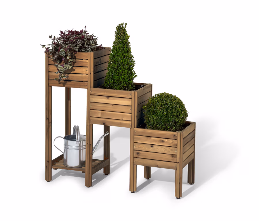 - 3 seperate Pflanzkästen auf verschiedenen Ebenen