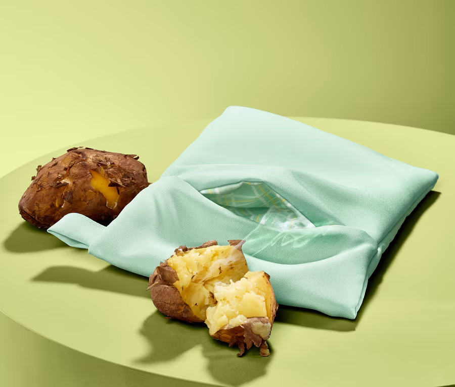 Zum Garen werden die Kartoffeln wie gewohnt gewaschen und einfach in der geschlossenen Tasche in die Mikrowelle gelegt. Auf die gleiche Weise lassen sich natürlich auch Süsskartoffeln und anderes Gemüse zubereiten. Die Tasche ist waschbar und lässt sich beliebig oft verwenden.
