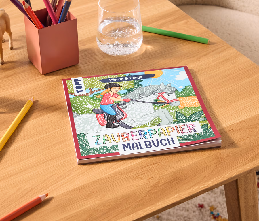 - Dieses besondere Malbuch besteht aus speziellem Zauberpapier, das beim Ausmalen unsichtbare Muster sichtbar werden lässt und nach und nach kleine Geheimnisse preisgibt. Es sorgt zusätzlich für einen Wow-Effekt durch Motive, die sich verändern oder beim Anmalen erscheinen. Das Malen wird hier zum Erlebnis, denn jede Seite hält neue Überraschungen bereit. Gemalt werden magische Motive rund um Pferde und Ponys.