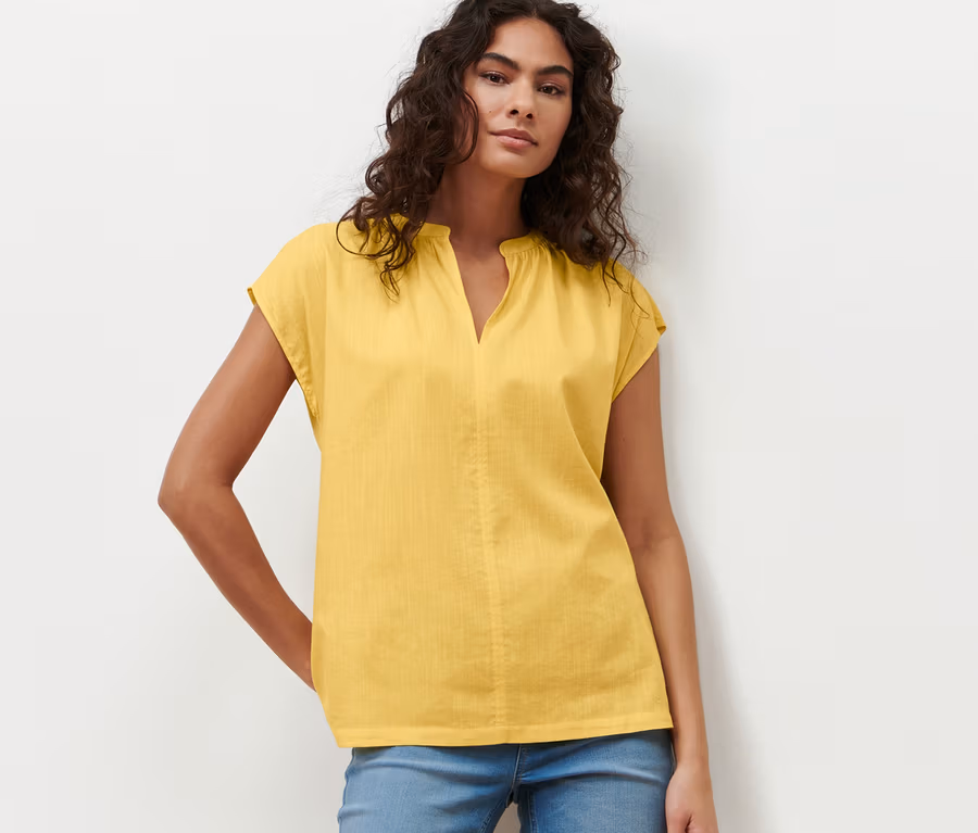 - Tunika-Ausschnitt mit leichter Raffung