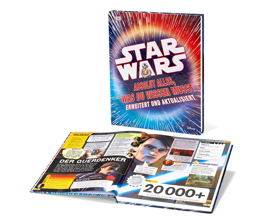 Für alle eingefleischten Star-Wars-Fans ist dieses Buch unverzichtbar. Es ist gefüllt mit den wichtigsten Infos über das beliebte Weltraummärchen und präsentiert überraschende und erstaunliche Fakten aus dem Star-Wars-Universum: Steckbriefe von Darth Vader, Luke Skywalker und Co., Top-Listen, interessante Vergleiche, Antworten auf spannende Fragen und lustige Originalzitate finden sich darin ebenso wie besonderes Filmwissen durch einen exklusiven Blick hinter die Kulissen. Das hochwertige Hardcover-Buch mit über 500 farbigen Illustrationen und Fotos auf 256 Seiten ist ein toller Schmöker für Science-Fiction-Begeisterte und solche, die es werden wollen.