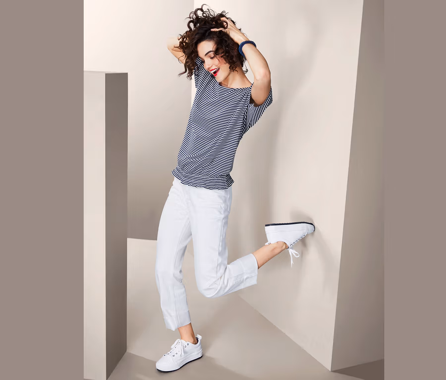 Mit diesem sommerlich leichten Kurzarmshirt hat man ein ideales Oberteil für die schönen Tage. Mit seiner weich fliessenden Qualität und dem Stoffmix aus Viskose und Bio-Baumwolle liegt es jederzeit angenehm auf der Haut. Das Damenshirt mit Rundhalsausschnitt hat modisch überschnittene Schultern und der breite, gesmokte Bund sorgt für eine optimale Passform.
