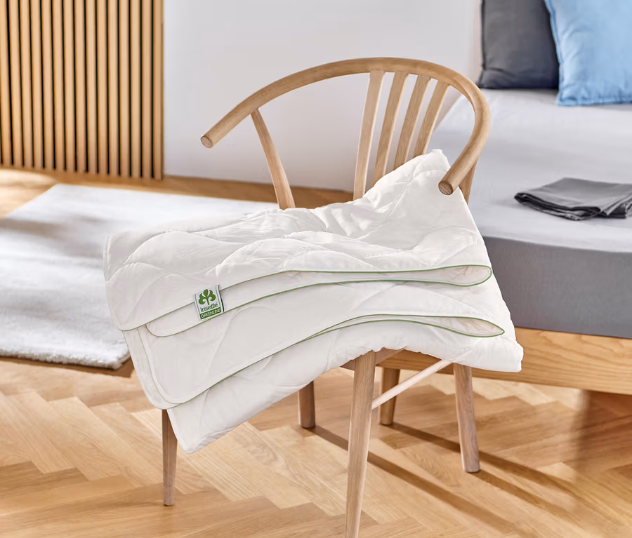 - Wärmeklasse 1: leichte Sommerdecke mit geringem Wärmegrad