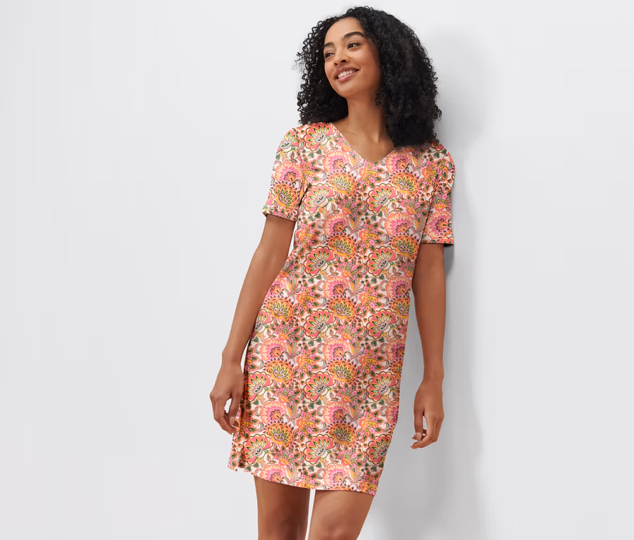 • Mit V-Ausschnitt und kurzen Ärmeln