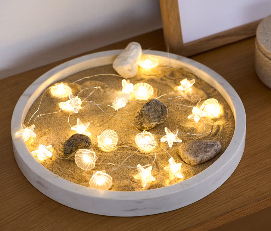 • Mit 20 fest integrierten Micro-LEDs in Muschel und Seestern-Form – Lichtfarbe warmweiss