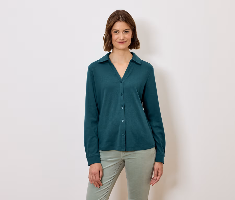 Blusenshirt mit Knopfleiste, petrol