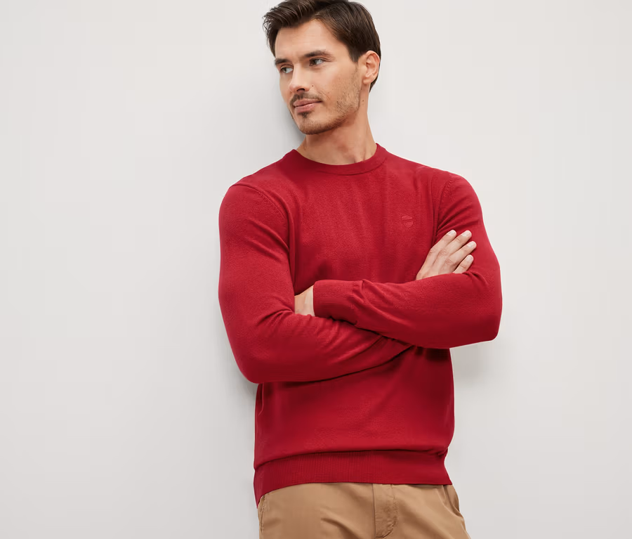 - Rippstrickbündchen an Ausschnitt, Ärmeln und Saum